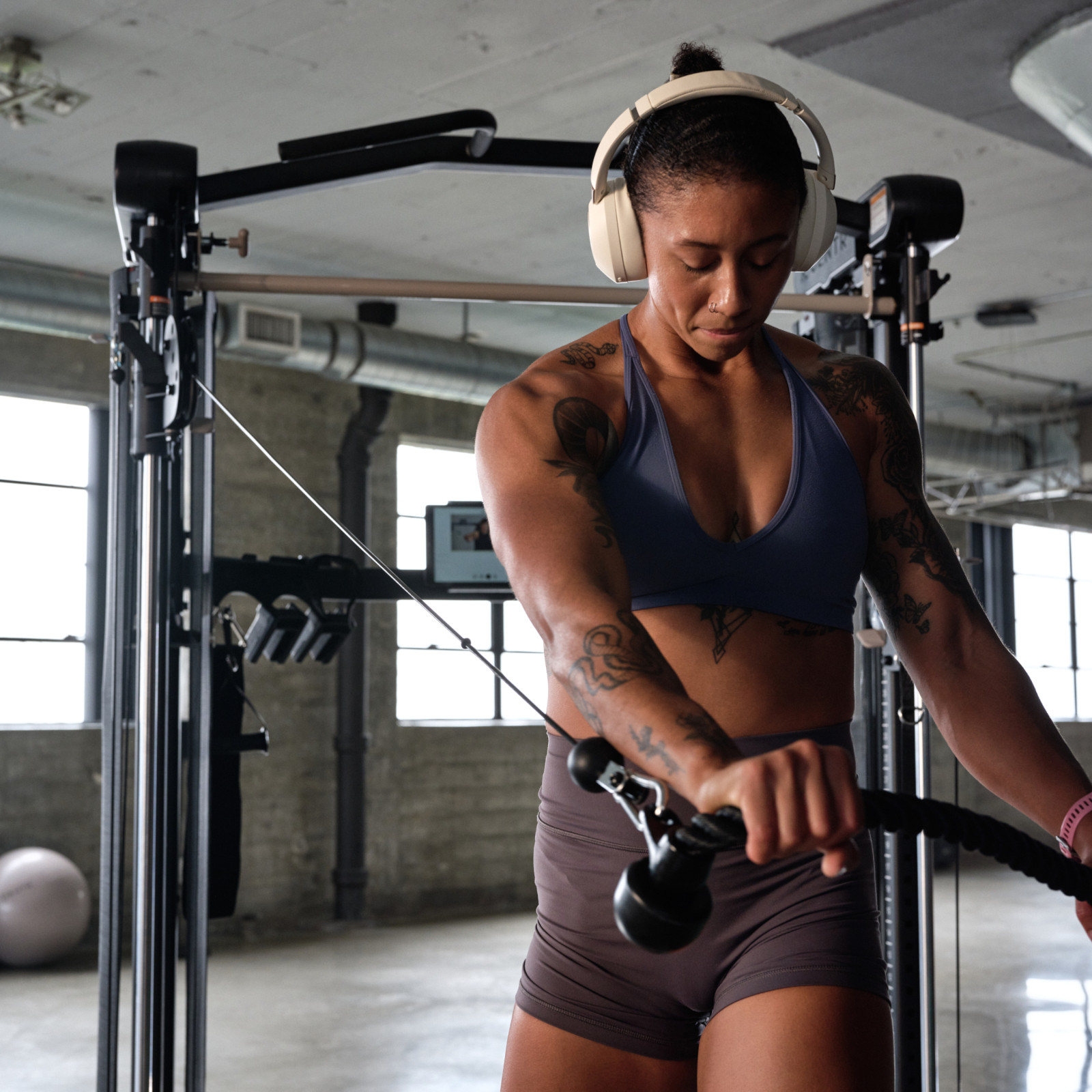 Sie treiben ambitioniert Kraftsport und befürchten, dass die zwei 75-kg-Gewichtsblöcke mit 2:1-Übersetzungsverhältnis für Ihre Bedürfnisse nicht ausreichen? Auch hier verfügt die Centr Kraftstation über einen einzigartigen Kniff: Durch das Verbinden eines weiteren Kabels auf jeder Seite wird das Trainingsgewicht verdoppelt. So können Sie bis zu 163 kg Trainingsgewicht an der Smith Machine erreichen.