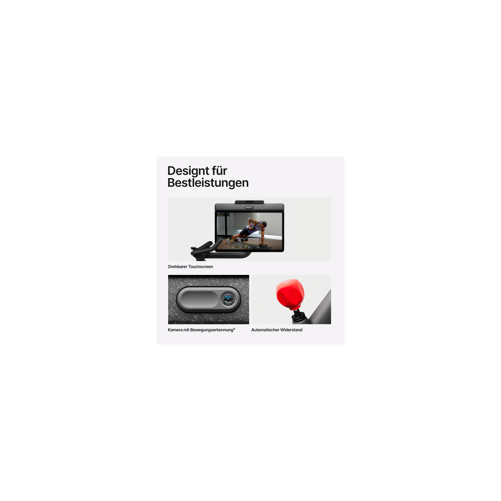 Die Peloton All-Access Mitgliedschaft (45 €/Monat) ist von Kunden in Deutschland separat über die Peloton Interactive Deutschland GmbH und von Kunden in Österreich über die Peloton Interactive UK Limited zu erwerben, um von dem jeweiligen Peloton Fitnessgerät auf die Kursbibliothek sowie auf alle dafür vorgesehenen Funktionen zugreifen zu können. Es gelten Alters-, Größen- und Gewichtsbeschränkungen, siehe onepeloton.de/membership-terms. Abgeschlossene Mitgliedschaften vor dem 02.10.25 sind von der Preiserhöhung nicht betroffen.
