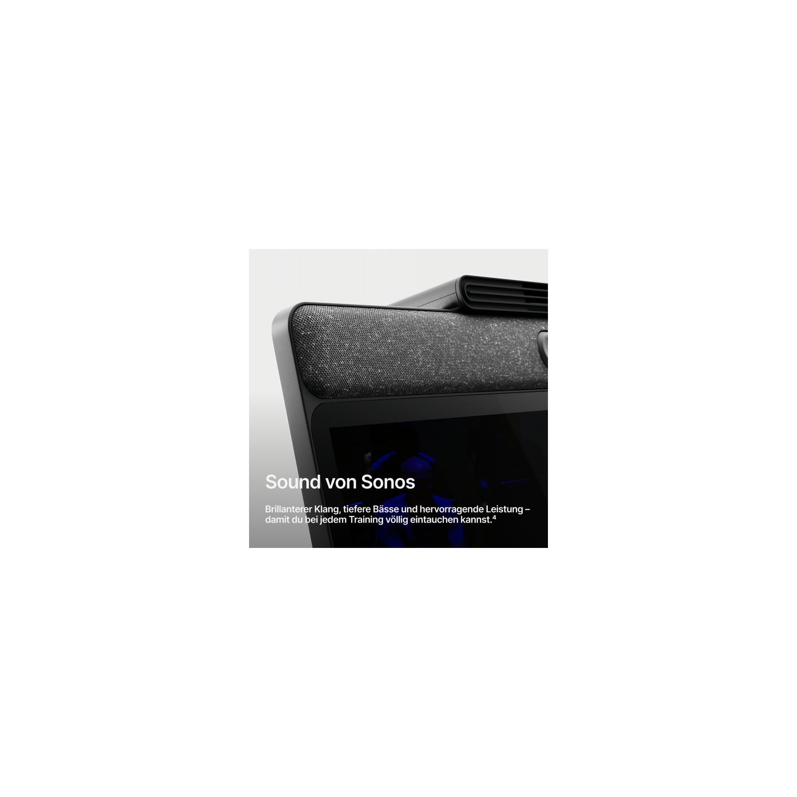 - 2.1-Audiosystem mit Vollbereichslautsprechern und Subwoofer von Sonos bieten das bisher beste Audioerlebnis von Peloton.
